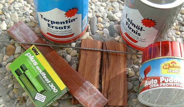 Habe ich bei meinem ersten Projekt noch bei jedem Körnungswechsel die Schleifrichtung geändert und penibel darauf geachtet keine querlaufenden Schleifspuren zu übersehen, habe ich dies hier nur bis zur 240er Körnung gemacht und alle feineren danach nur noch in Längsrichtung aufgebracht.