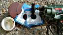Im Gegensatz zu meinem ersten Selbstbauprojekt habe ich diesmal den Klingenschliff mit Hilfe von Bohrmaschine, -halter und den Kaindl Schleifscheiben vollbracht. Auch diesmal ist mir kein richtiger Flachschliff gelungen, sondern nur ein leicht konvexer. Allerdings war die Abtragleistung mit der Schleifscheibe um einiges höher als mit dem Bandschleifer und den nicht sonderlich gut für Stahl geeigneten Bändern.